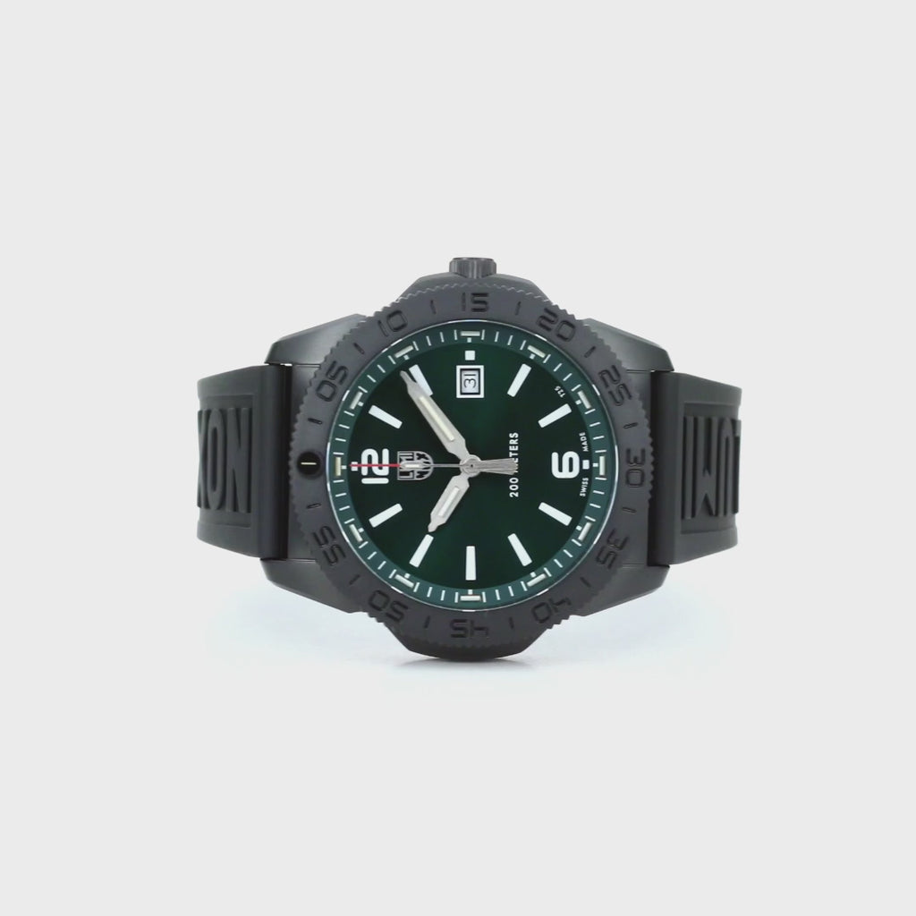 A striking emerald green sunray dial offers a vibrant, high-contrast display that’s as eye-catching as it is functional. Equipped with Luminox Light Technology for a constant glow in low light and total darkness, this watch is always ready for the next mission. The versatile black cut-to-fit strap can be cut to any desired length and is designed to fit all wrist sizes. With 200 meters of water resistance, a screw-down crown, and a sapphire crystal with anti-reflective coating, the Pacific Diver is a trusted companion below and above water.