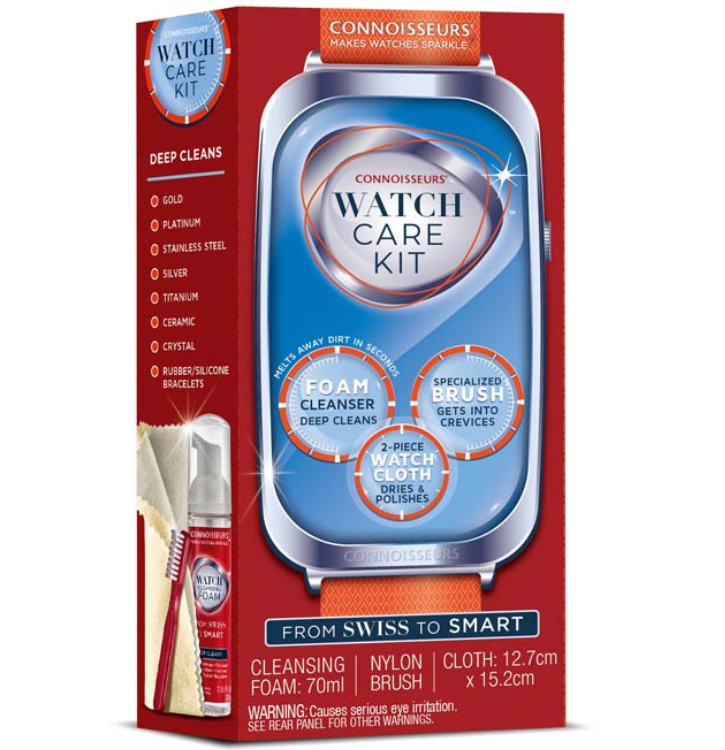 Keep your watch looking pristine with the Connoisseurs Watch Cleansing Foam Kit with Brush and Cloth, a complete 3-piece care system designed to deep clean, polish, and protect your timepiece.